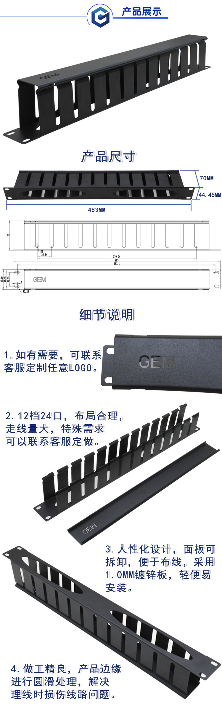 標(biāo)品新品19英寸機(jī)柜理線架12檔24口網(wǎng)絡(luò)配線架