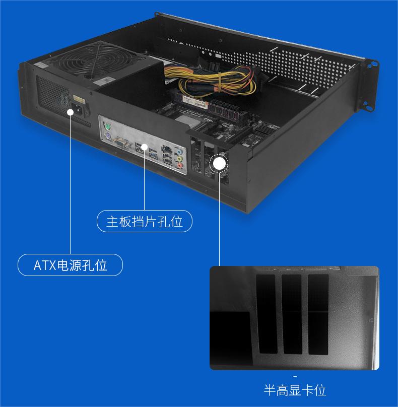 1、質(zhì)感外形:銑鋁面板服務(wù)器機(jī)箱,黑銀兩色可選,前蜂窩式通風(fēng)散熱孔,美觀大氣。