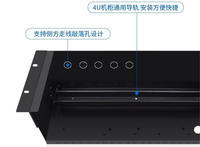 2.通用導(dǎo)軌,安裝更快捷:鍍鋅材質(zhì)堅(jiān)固耐,4U機(jī)柜采用通用導(dǎo)軌設(shè)計,組裝起來更為方便快捷,同時支持側(cè)方走線敲落孔。