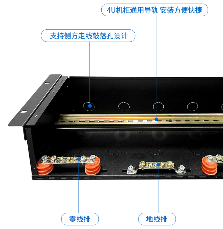 4U機(jī)柜配電箱采用通用導(dǎo)軌與側(cè)方走線敲落孔設(shè)計(jì),方便安裝和維護(hù)。它可以容納更多的電子元件和線路,使得安裝過程更為簡潔。