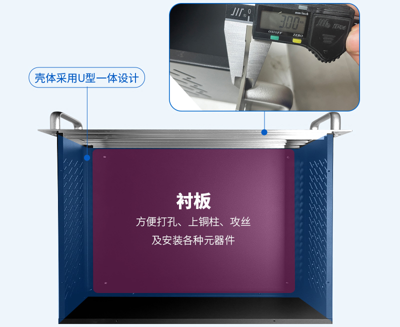 服務器工控機箱采用U型—體設計,搭配鋁型材前面板與鋁把手,結(jié)構(gòu)穩(wěn)定,同時可以容納更多的硬件設備,節(jié)省空間和成本。